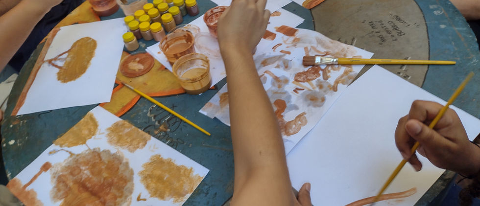 O segundo dia possibilitou aos estudantes uma experiência prática e criativa ao ar livre, no pátio da escola. Os estudantes tiveram a oportunidade de utilizar tintas de solo para produzir suas próprias obras de arte. Essa atividade prática não apenas consolidou os conceitos aprendidos anteriormente, mas também incentivou a expressão artística dos alunos, proporcionando uma nova perspectiva sobre a utilização de recursos naturais, como o solo.
