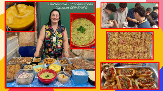 ¡Hola! ¿Cómo están? En la edición de agosto, vamos a hablar sobre gastronomía latinoamericana, ya que es parte esencial en la formación de la identidad cultural de los pueblos de América Latina. Conocer la gastronomía típica de diferentes países es fundamental para promover el respeto a la diversidad, a las manifestaciones culturales, fortalecer la identidad cultural de los estudiantes y ampliar su visión del mundo. Al conocer las lenguas, tradiciones, historias, manifestaciones artísticas y prácticas sociales de los distintos pueblos que forman parte de América Latina, los estudiantes desarrollan una conciencia más crítica y abierta hacia la diversidad, aprenden a valorar sus raíces y las de sus vecinos, sin prejuicios. La gastronomía latinoamericana es una celebración de la diversidad cultural, histórica y geográfica del continente. Con influencias indígenas, africanas, europeas y asiáticas, los platos típicos reflejan la fusión de saberes ancestrales y tradiciones heredados a lo largo de los siglos, conformando una cocina rica, creativa y profundamente conectada con la identidad de sus pueblos. Cada país posee una culinaria única, marcada por ingredientes nativos como maíz, papa, mandioca, ajíes, frijoles, quinua y cacao, que fueron cultivados y utilizados por las civilizaciones precolombinas mucho antes de la llegada de los colonizadores europeos. Estos ingredientes, combinados con técnicas e insumos traídos de otros continentes, dieron origen a platos icónicos y sabores inolvidables. En el mes de junio, en las clases de español del 2º año de la Enseñanza Media, del Centro de Ensino e Pesquisa Aplicada à Educação (CEPAE/UFG), fueron propuestas actividades sobre gastronomía de América Latina, culminando en un día de degustación de platos típicos hechos por nuestros estudiantes y por la profesora Fabiana P. F. Fernandes, responsable por las clases de español. Compartimos algunos registros de la actividad.