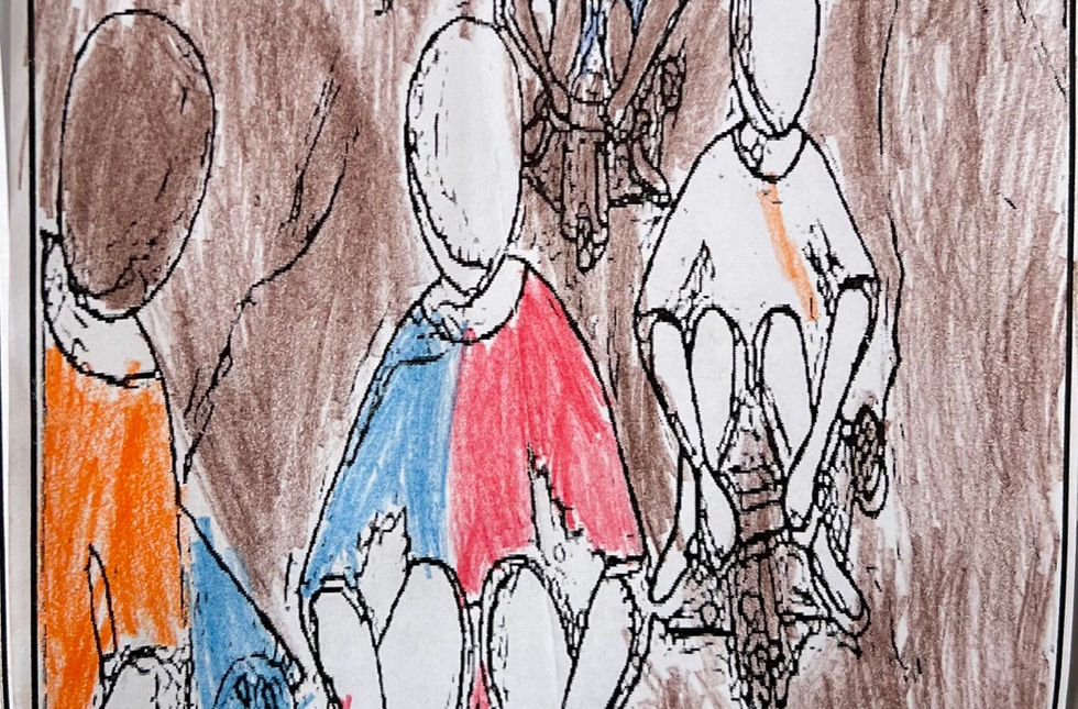 A turma do 4º ano C da Escola Municipal Francisco Xavier Vieira - Extensão São Domingos, orientada pelo professor Paulino Antonio da Silva Moreira, realizou um trabalho de releitura das obras de Ivan Cruz, artista conhecido por retratar brincadeiras infantis tradicionais. Para introduzir o tema, o professor apresentou aos alunos uma releitura feita por ele mesmo, representando crianças andando de bicicleta. A imagem serviu como exemplo para mostrar o processo de releitura: observar a obra original, compreender seus elementos principais e, a partir deles, criar uma nova interpretação mantendo a essência, mas com toques pessoais de criatividade.